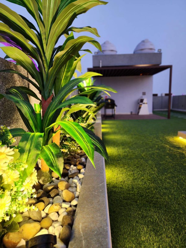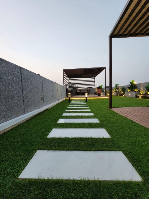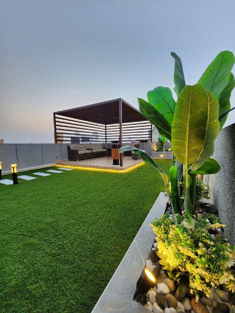 (LED)، حيث نقوم بتركيب وحدات إضاءة موفرة للطاقة بين الصخور والممرات وأسفل الأشجار لإبراز جمالية الحديقة في المساء. هذه الإضاءة لا تستهلك كهرباء عالية بفضل تقنية التوفير، وتتحمل العوامل الجوية من أمطار وغبار وأتربة. كل هذه العناصر تندمج معاً لتخلق تجربة متكاملة ترفع من قيمة العقار وتعكس ذوق صاحب المنزل الرفيع. نحرص على استخدام مواد بناء محلية وعالمية عالية الجودة في إنشاء الممرات الحجرية وأحواض الزراعة المرتفعة، لضمان متانة العمل وثباته لعشرات السنين دون تشققات أو تآكل.